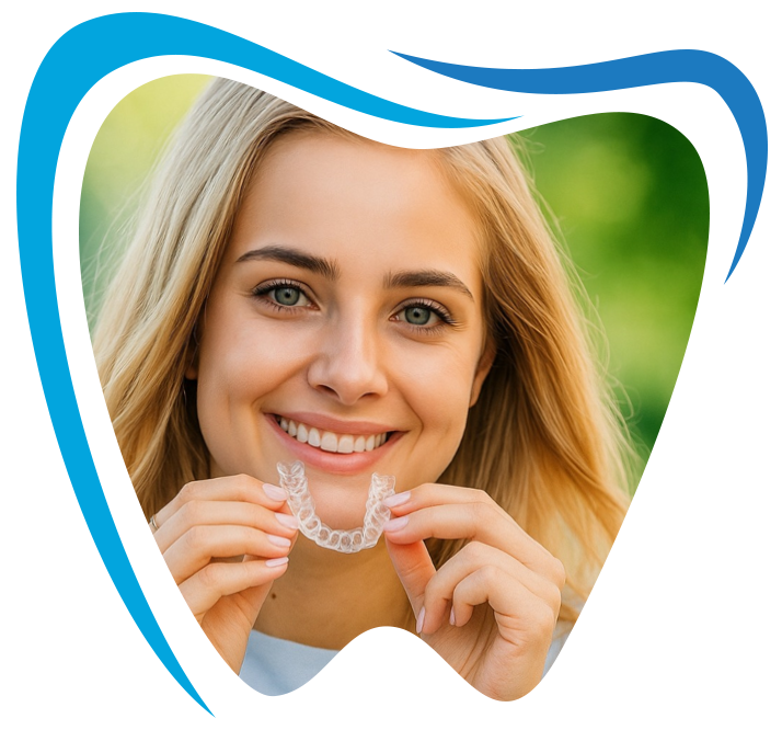 Transform your smile discreetly and comfortably with Invisalign Aligners , the modern alternative to traditional braces. Made from advanced SmartTrack™ material, Invisalign offers a nearly invisible way to straighten teeth without metal wires or brackets. Each aligner is custom-designed to fit snugly over your teeth, gently shifting them into the desired position over time. Ideal for teens and adults alike, Invisalign provides an effective solution for correcting crowded teeth, gaps, and bite issues—while allowing you to maintain your confidence throughout the treatment.